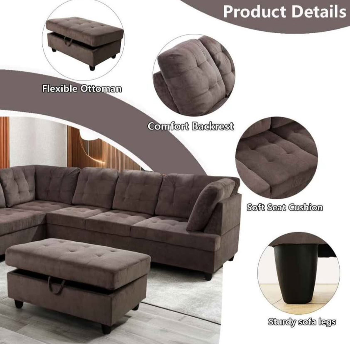 Includes: sectional + storage ottoman