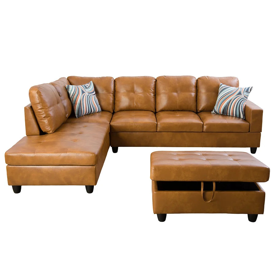 Ginger Faux Leather Sectional Couch With Storage Ottoman