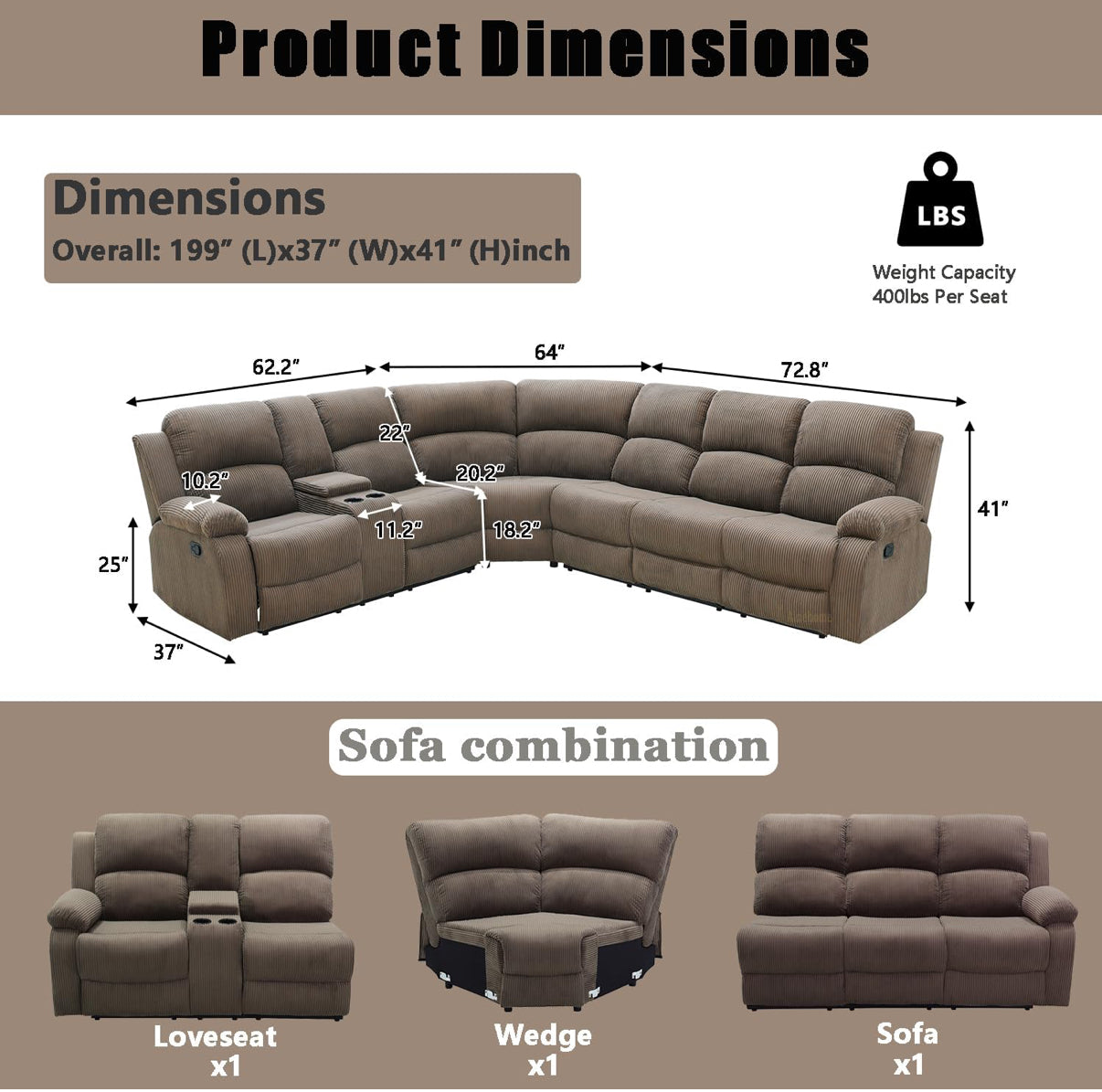 - 【Selected Materials & Quality Assurance】: Made of solid wood frame and metal support base, the love seat recliners are skin-friendly, soft corduroy fabric with high elasticity memory foam, giving you cloud-like comfort and warmth. Each sturdy frame has been rigorously tested 25,000 times and can support up to 360LB per seat.